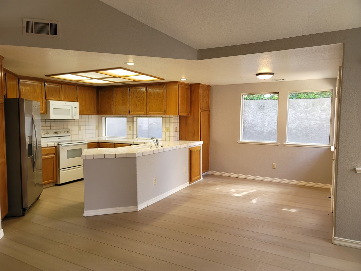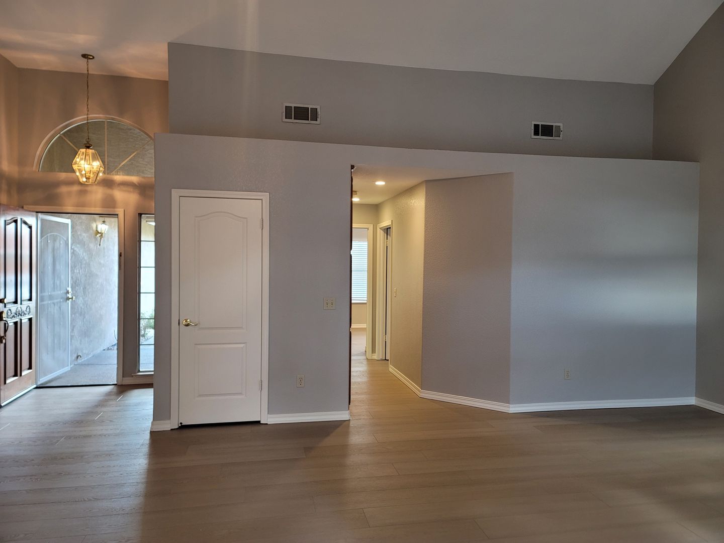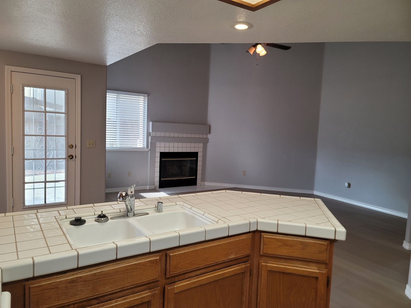 Come see this single story 3 bedroom, 2 bath home, freshly painted, new luxury vinyl plank flooring, blinds throughout, Living room, family room with fireplace with open kitchen/dining area makes a cozy feel. Master bathroom double vanity tiled counter tops, trifold closet, ceiling fan. Home is approx. 1800 sq. ft, 2- c garage w/ auto opener. A must see..