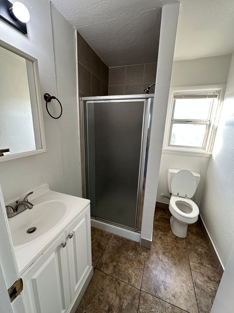 Complex with an upstairs 2/1 unit, vinyl windows, fresh paint, laminate flooring, ceiling fans, blinds, central heat/air, tiled shower w/glass doors ,bathroom vanity, gas stove, no disposal, storage room below with washer/dryer hook ups., 1 car space for parking.