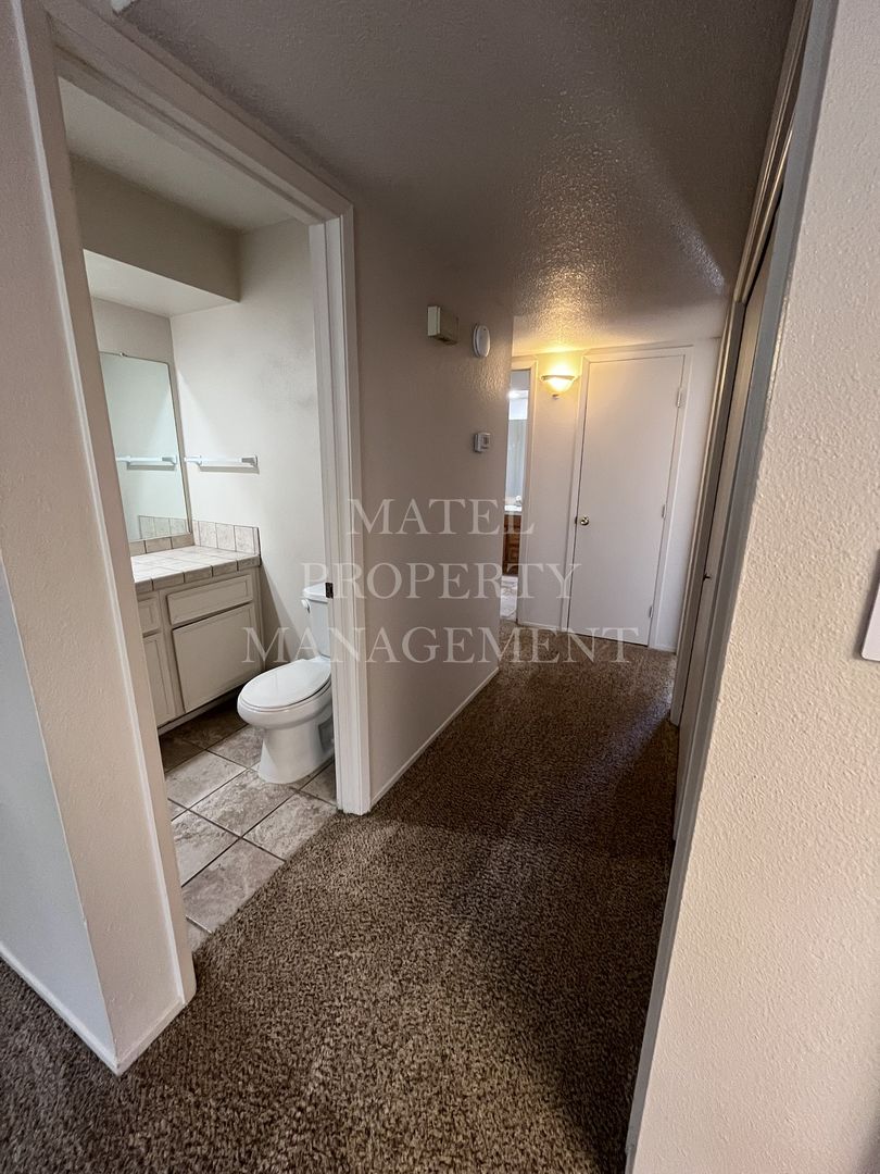 Gated Community, 2/1.5 upstairs unit, newer paint, blinds throughout, central heat/air, stove, dishwasher, refrigerator (not in photos), covered carport, small balcony off kitchen,tile and carpet, inside W/D hook-ups, fireplace, community pool, tennis courts, HOA rules and regulations apply .