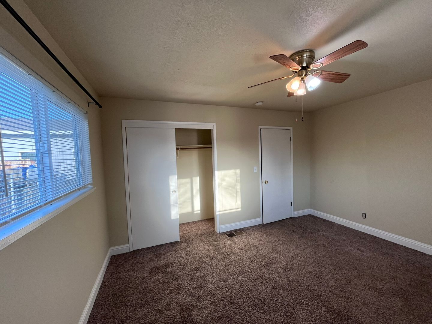 Oakdale home 3/2, approx. 1450 sq. ft., 2-car garage, dual pane windows, security doors front/back, Laminate flooring in living and hall, carpet in bedrooms, blinds throughout, ceilings fans in several rooms, central heat/air